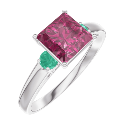 « L'ATELIER » NR. 167984Inel Aur alb 9 carate - Rubin Princess 1 carate - Pietre laterale Smarald