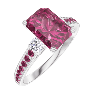 « L'ATELIER » NR. 168032Inel Aur alb 9 carate - Rubin Smarald 1 carate - Pietre laterale Diamant - Încrustare Rubin 4.6