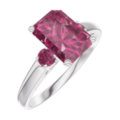 Inel Aur alb 18 carate - Rubin Smarald 1 carate - Pietre laterale Rubin