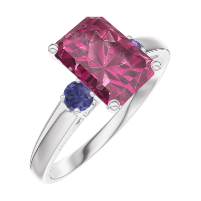 « L'ATELIER » NR. 168063Inel Aur alb 18 carate - Rubin Smarald 1 carate - Pietre laterale Safir albastru 4.6