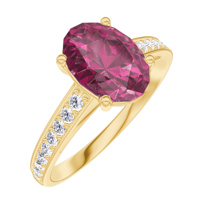 « L'ATELIER » NR. 168106Inel Aur galben 9 carate - Rubin Oval 1 carate - Încrustare Diamant 4.8