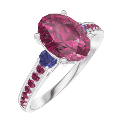 « L'ATELIER » NR. 168171Inel Aur alb 18 carate - Rubin Oval 1 carate - Pietre laterale Safir albastru - Încrustare Rubin 4.8 (9)
