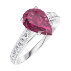 Inel Aur alb 18 carate - Rubin Pară 1 carate - Încrustare Diamant