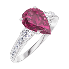 Inel Aur alb 18 carate - Rubin Pară 1 carate - Pietre laterale Diamant - Încrustare Diamant