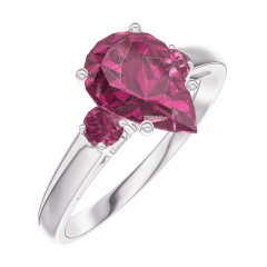 Inel Aur alb 18 carate - Rubin Pară 1 carate - Pietre laterale Rubin