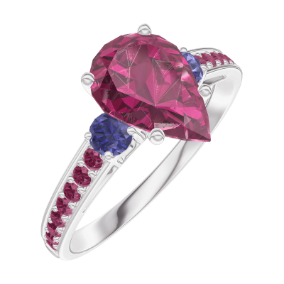 « L'ATELIER » Nº168272Inel Aur alb 9 carate - Rubin Pară 1 carate - Pietre laterale Safir albastru - Încrustare Rubin