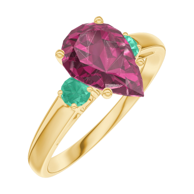 « L'ATELIER » NR. 168281Inel Aur galben 18 carate - Rubin Pară 1 carate - Pietre laterale Smarald