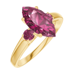 Inel Aur galben 18 carate - Rubin Marquise 1 carate - Pietre laterale Rubin