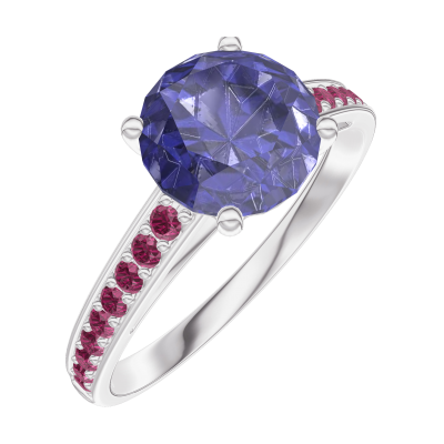 « L'ATELIER » Nº168412Inel Aur alb 9 carate - Safir albastru rotund 1 carate - Încrustare Rubin 4.8
