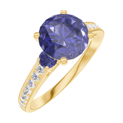 « L'ATELIER » NR. 168465Inel Aur galben 18 carate - Safir albastru rotund 1 carate - Pietre laterale Safir albastru - Încrustare Diamant 4.9