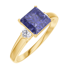 Inel Aur galben 18 carate - Safir albastru Princess 1 carate - Pietre laterale Diamant