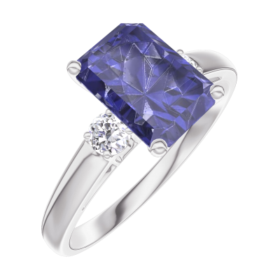 « L'ATELIER » NR. 168624Inel Aur alb 9 carate - Safir albastru Smarald 1 carate - Pietre laterale Diamant 4.6