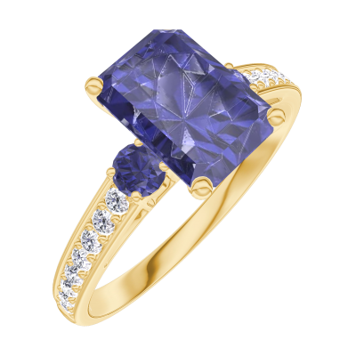 « L'ATELIER » NR. 168665Inel Aur galben 18 carate - Safir albastru Smarald 1 carate - Pietre laterale Safir albastru - Încrustare Diamant 4.6