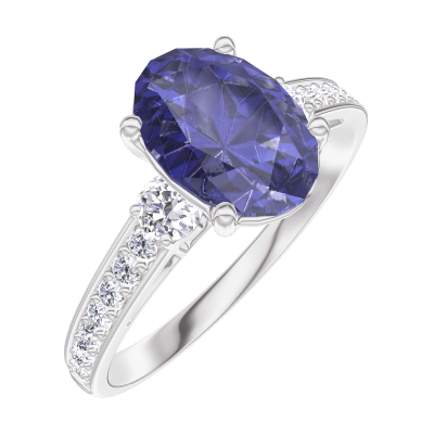 « L'ATELIER » NR. 168728Inel Aur alb 9 carate - Safir albastru Oval 1 carate - Pietre laterale Diamant - Încrustare Diamant 4.8