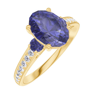 « L'ATELIER » NR. 168766Inel Aur galben 9 carate - Safir albastru Oval 1 carate - Pietre laterale Safir albastru - Încrustare Diamant 4.8