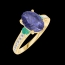 Inel Aur galben 9 carate - Safir albastru Oval 1 carate - Pietre laterale Smarald - Încrustare Diamant
