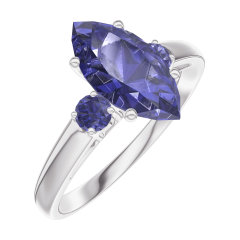 Inel Aur alb 18 carate - Safir albastru Marquise 1 carate - Pietre laterale Safir albastru