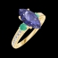 Inel Aur galben 9 carate - Safir albastru Marquise 1 carate - Pietre laterale Smarald - Încrustare Diamant