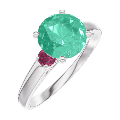 « L'ATELIER » NR. 169043Inel Aur alb 18 carate - Smarald rotund 1 carate - Pietre laterale Rubin 4.9
