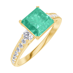 Inel Aur galben 18 carate - Smarald Princess 1 carate - Pietre laterale Diamant - Încrustare Diamant