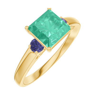 « L'ATELIER » NR. 169161Inel Aur galben 18 carate - Smarald Princess 1 carate - Pietre laterale Safir albastru