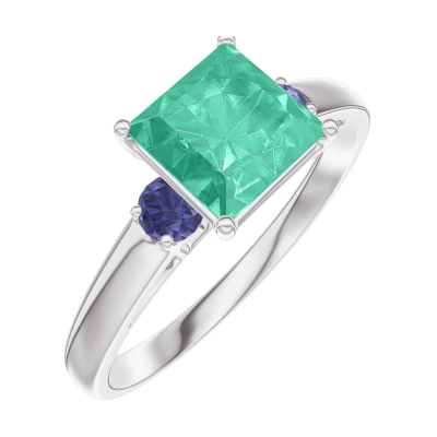 « L'ATELIER » NR. 169163Inel Aur alb 18 carate - Smarald Princess 1 carate - Pietre laterale Safir albastru
