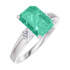 Inel Aur alb 9 carate - Smarald Smarald 1 carate - Pietre laterale Diamant
