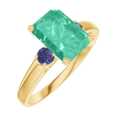 « L'ATELIER » NR. 169262Inel Aur galben 9 carate - Smarald Smarald 1 carate - Pietre laterale Safir albastru 4.6