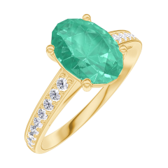 Inel Aur galben 18 carate - Smarald Oval 1 carate - Încrustare Diamant