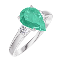 Inel Aur alb 9 carate - Smarald Pară 1 carate - Pietre laterale Diamant