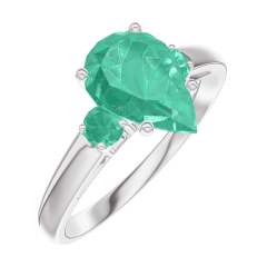 Inel Aur alb 9 carate - Smarald Pară 1 carate - Pietre laterale Smarald