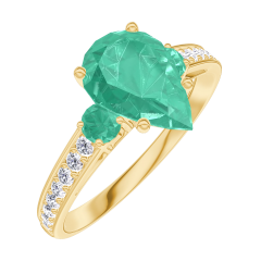Inel Aur galben 18 carate - Smarald Pară 1 carate - Pietre laterale Smarald - Încrustare Diamant