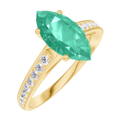 Inel Aur galben 18 carate - Smarald Marquise 1 carate - Încrustare Diamant