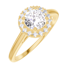 Inel Aur galben 18 carate - Diamant rotund 0.5 carate - Halo Diamant