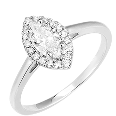 Inel Aur alb 9 carate - Diamant Marquise 0.5 carate - Halo Diamant