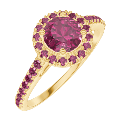 « L'ATELIER » NR. 170314Inel Aur galben 9 carate - Rubin rotund 0.5 carate - Halo Rubin - Încrustare Rubin 5