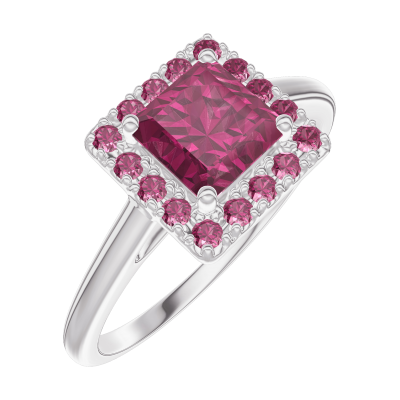 « L'ATELIER » NR. 170356Inel Aur alb 9 carate - Rubin Princess 0.5 carate - Halo Rubin 4.6 (10)
