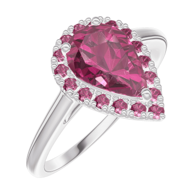 « L'ATELIER » NR. 170500Inel Aur alb 9 carate - Rubin Pară 0.5 carate - Halo Rubin 5