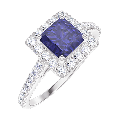 « L'ATELIER » NR. 170632Inel Aur alb 9 carate - Safir albastru Princess 0.5 carate - Halo Diamant - Încrustare Diamant 4.6