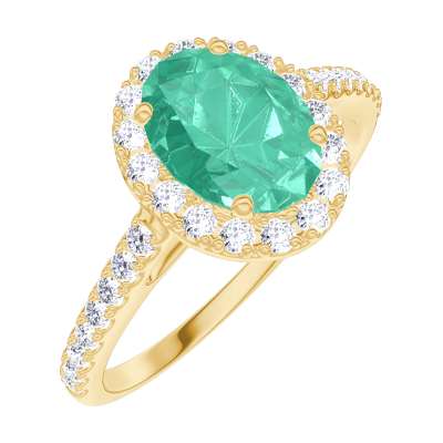« L'ATELIER » NR. 171014Inel Aur galben 9 carate - Smarald Oval 0.5 carate - Halo Diamant - Încrustare Diamant 4.8