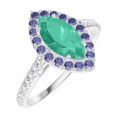 Inel Aur alb 18 carate - Smarald Marquise 0.5 carate - Halo Safir albastru - Încrustare Diamant