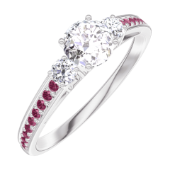 Inel Aur alb 9 carate - Diamante de laborator rotund 0.3 carate - Pietre laterale Diamante de laborator - Încrustare Rubin