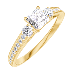 Inel Aur galben 18 carate - Diamante de laborator Princess 0.3 carate - Pietre laterale Diamante de laborator - Încrustare Diamante de laborator