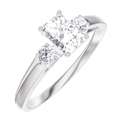 Inel Aur alb 9 carate - Diamante de laborator Smarald 0.3 carate - Pietre laterale Diamante de laborator