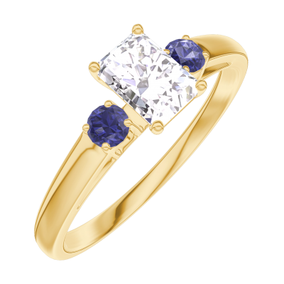 « L'ATELIER » NR. 180262Inel Aur galben 9 carate - Diamante de laborator Smarald 0.3 carate - Pietre laterale Safir albastru