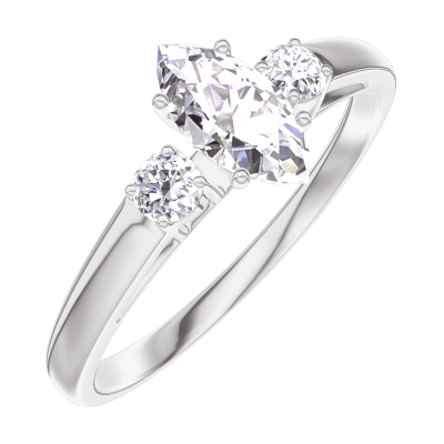 « L'ATELIER » NR. 180523Inel Aur alb 18 carate - Diamante de laborator Marquise 0.3 carate - Pietre laterale Diamante de laborator