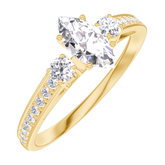 Inel Aur galben 18 carate - Diamante de laborator Marquise 0.3 carate - Pietre laterale Diamante de laborator - Încrustare Diamante de laborator
