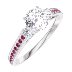 Inel Aur alb 9 carate - Diamante de laborator rotund 0.5 carate - Pietre laterale Diamante de laborator - Încrustare Rubin