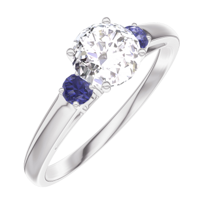 « L'ATELIER » Nº182463Inel Aur alb 18 carate - Diamante de laborator rotund 0.5 carate - Pietre laterale Safir albastru 4.9