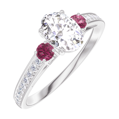 « L'ATELIER » NR. 182747Inel Aur alb 18 carate - Diamante de laborator Oval 0.5 carate - Pietre laterale Rubin - Încrustare Diamante de laborator